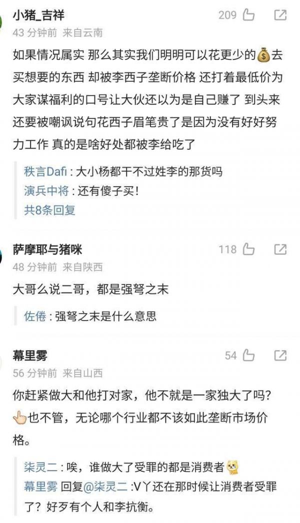 你看看,如果一个人出来说李佳琦“控价”,那么可能是眼红人家李佳琦赚得多,但这么多人出来指责李佳琦,而且还都是有头有脸的大人物出来骂李佳琦,这就说明,李佳琦可能真的在某些方面办事不厚道。