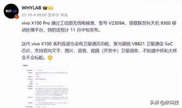根据爆料,首款天玑9300手机将会在11月份正式发布,极大概率是vivo X100系列拿下首发,vivo的天玑旗舰素质已经有目共睹,届时将全方位展示出天玑9300的实力,非常值得期待。