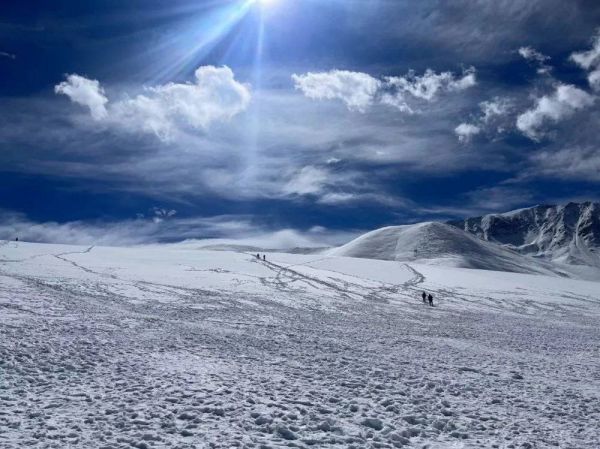 它的山体看起来柔和而敦厚,几乎是一个完美浑圆的覆钵形状。它雄踞群山之首,是帕米尔最重要的地标,也被称为“冰川之父”。