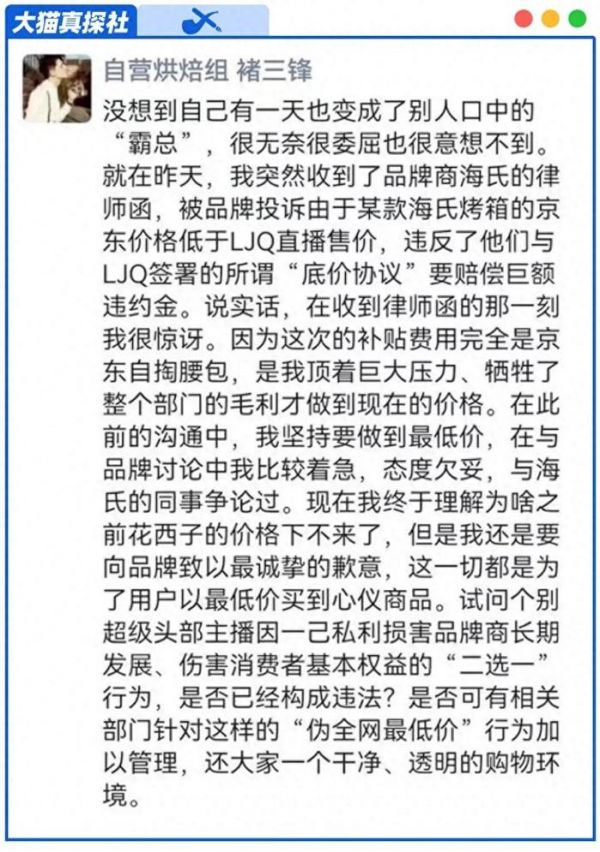 2、爆料了品牌与LJQ直播间签订了“底价协议”;