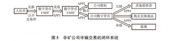 显然,第二个层次和第三个层次都是公司自己发行的货币,第三个层次是第二个层次的具体化和多样化,其本质上是非法融资项目。这三个层次构成了非矿公司内部的数字化交易系统,可以说本质上是空对空的交易。这些交易过程一方面完全受非矿公司的监督和控制,另一方面则避开了政府监管,实现了数字货币交易的隐蔽化,成为无处可查的安全资金,为隔离监管设置了多重隐蔽环节。