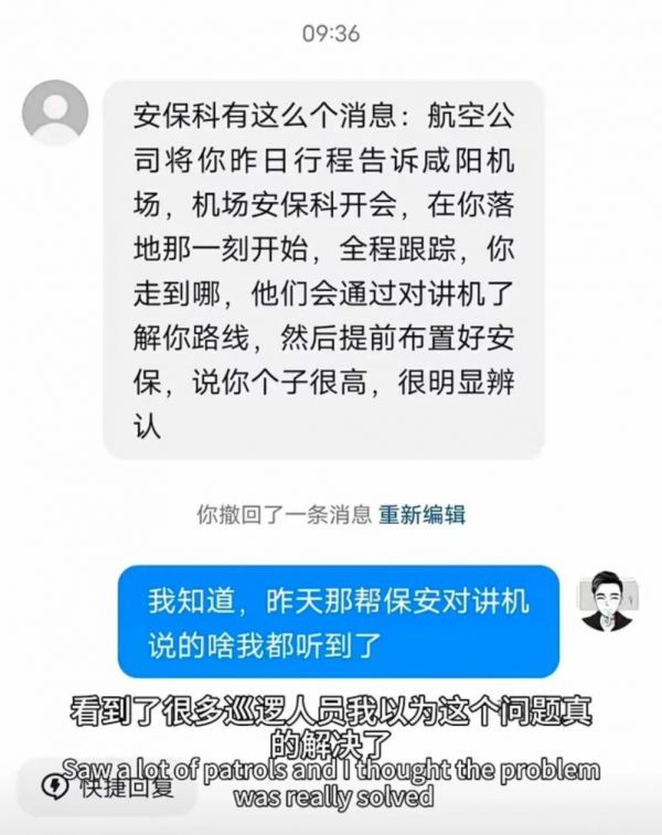 事情到这里还没有完,真正的高潮来了:昨晚,博主再次落地到了西安机场,发现那里有很多巡逻的人,以为这个问题都解决了,直到收到了一位粉丝的私信,是这么说的: