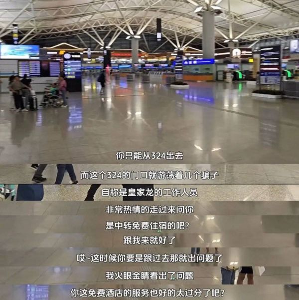 看到一位博主的视频,标题为:“西安机场免费住宿的骗局”。