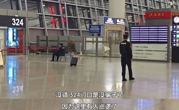 西安机场夜间,326号门是关闭状态,想过去,只能走324号门。而324号门口就游荡着几个骗子,这几个人自称是“皇家龙”的工作人员,非常热情地走过来问博主: