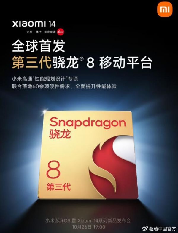 小米14首发 骁龙8 Gen3定档:10月24日发布