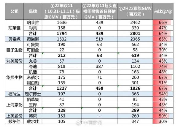 △图为国货品牌2022年“双 11”销售复盘情况。(图片源自国金证券研报)