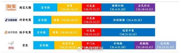 △图为各电商平台“双11”大促计划。(图片源自开源证券研报)