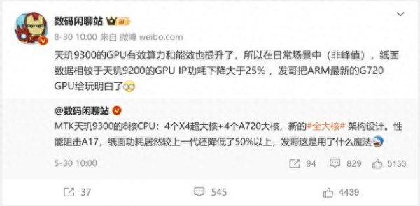 天玑 9300 功耗爆料:GPU 日常功耗降 25%,全大核 CPU 降 50%