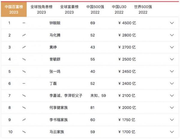 2023年胡润百富榜发布:钟睒睒仍为中国首富,马化腾重回第二