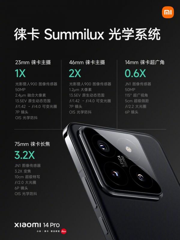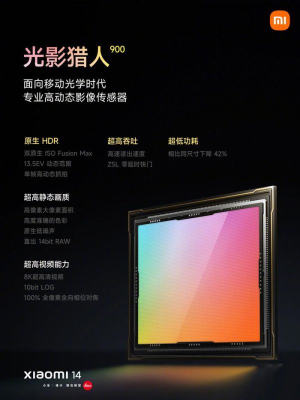小米全新影像传感器品牌「光影猎人」采用了 1/1.31″定制大底,13.5EV 原声超高动态范围,色彩更真实,同尺寸功耗降低 42%,续航更持久,搭配徕卡光学 Summilux 镜头,感光量提升 180%。