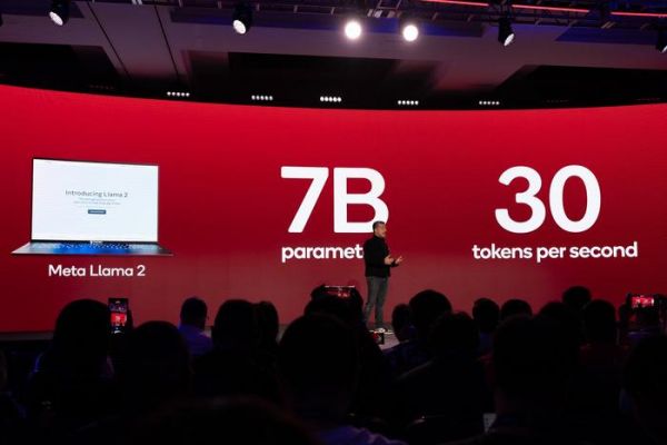 运行 Meta Llama 2,图/雷科技并且通过骁龙 X Elite 平台,高通已经可以实现在终端侧运行 130 亿参数的大模型,如果是 70 亿参数大模型甚至可以做到每秒生成 30 个 token。