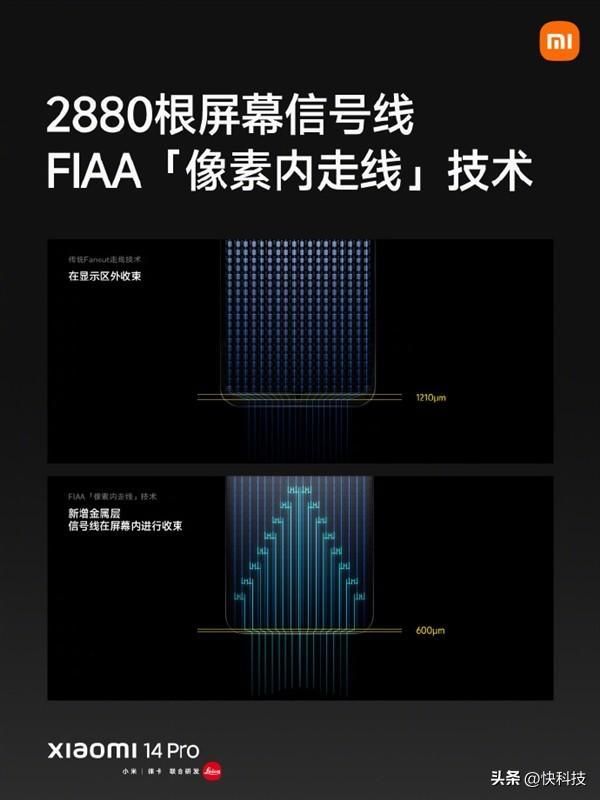 此外,这块屏幕具有2880根屏幕信号线,采用FIAA像素内走线技术在屏幕内将信号线进行收束。