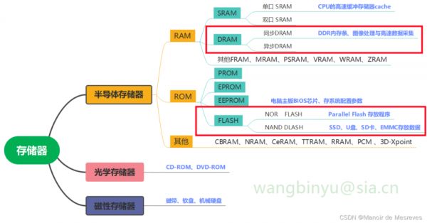 全球存储类芯片市场仍以DRAM和NAND Flash为主,2022年DRAM市场规模占比56.8%;NAND Flash市场规模占比43.2%。其中,DRAM主要作为计算机的内存,可分为DDR系列、LPDDR系列和GDDR系列、HBM系列。而NAND Flash被广泛用作大容量数据存储介质,可分为SSD、eMMC、SD卡等。NOR Flash则是市场规模第三大的存储芯片,广泛应用于需要存储系统程序代码的电子设备。