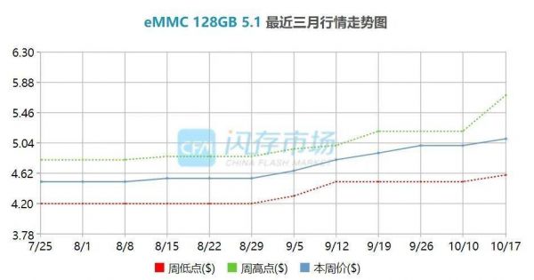 eMMC 128GB市场价格走势(单位:美元 ),来源:CFM闪存市场