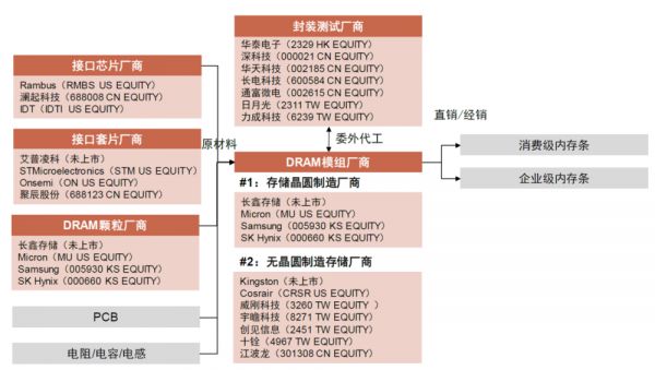 DRAM模组产业链,资料来源:各公司官网,中金公司研究部