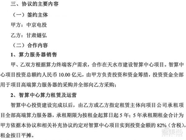 ▲甘肃燧弘与中京电投10亿元服务器大单公告的部分内容该项目由中京电投负责投资和资金筹措,投资资金全部用于项目高端算力服务器的采购并全部向甘肃燧弘采购。