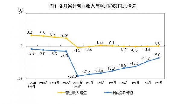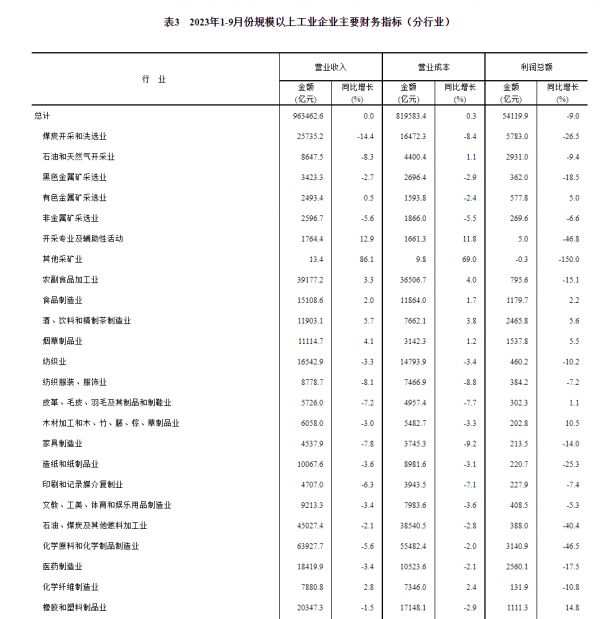 一、2023年1~9月份全国规模以上工业企业利润下降9.0%