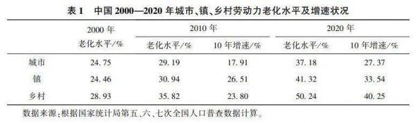 第七次全国人口普查数据显示,全国劳动力老化水平达42.47%,并且20年间以0.76%的平均年增长率上升。2000~2020年城市、镇与乡村的劳动力老化水平及其增速状况表明,农村劳动年龄人口的结构性老化正日益严峻,农村劳动力老化水平不仅高于全国劳动力老化平均水平,亦始终远高于同期的城市和镇。