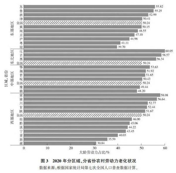 (二)农村劳动力老化水平的空间特征:区域与省际差异比较