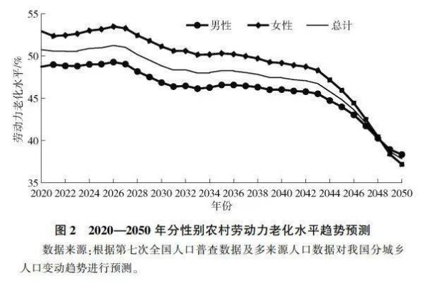 3. 未来30年农村劳动力老化还将进一步加剧,性别差异逐渐缩小