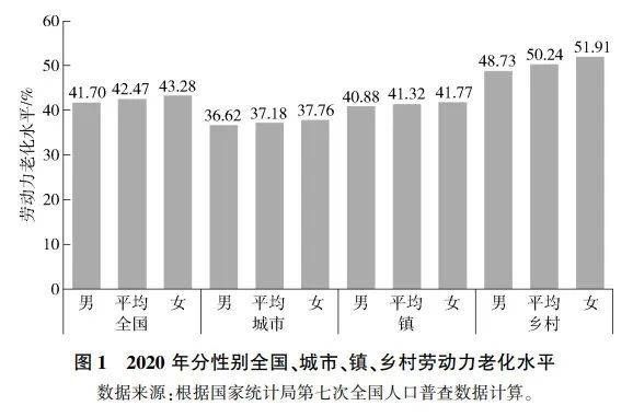 2. 全国劳动力老化水平存在显著的性别差异,尤其在农村差异最大