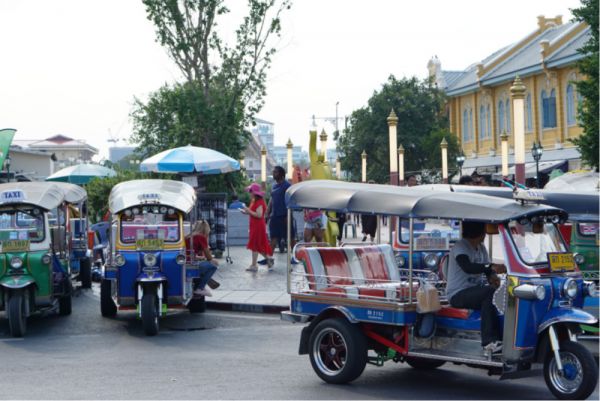 三轮车被称为突突车或者嘟嘟车(TukTuk),听起来像是尾气管道排气的声音,很形象。在泰国首都曼谷,突突车主要是用来拉客,像中国的网约车出租车一样,车头会有个“taxi”的标志,也算是路上一道别样的风景。