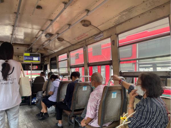在曼谷坐上一辆旧式公交车,咯吱作响的木地板见证着它的老迈,但无妨,车内依旧保持着干净整洁。