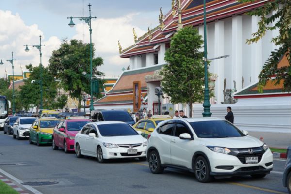 三轮车和两轮车在泰国也很常见,会和四轮汽车混行。