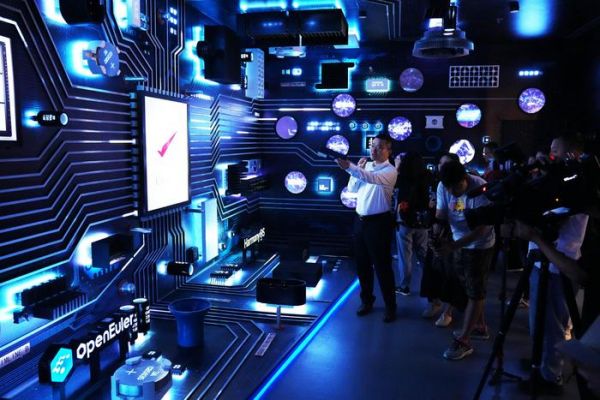 8月10日,在位于哈尔滨新区的深圳(哈尔滨)产业园区,黑龙江鲲鹏生态创新中心工作人员在介绍芯片研发情况。(新华社记者王建威摄)