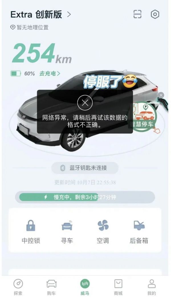 以9月与Apollo的上市梦破碎为节点,到网传沈晖“跑路”,员工欠薪、车主维权,一直到威马汽车官宣提交预重整申请,车主们的心可谓七上八下,但对于赵涵来说,无奈中带着一些无所谓,“App出了些问题,但也现在也都恢复了,只要能让我正常用就行”。