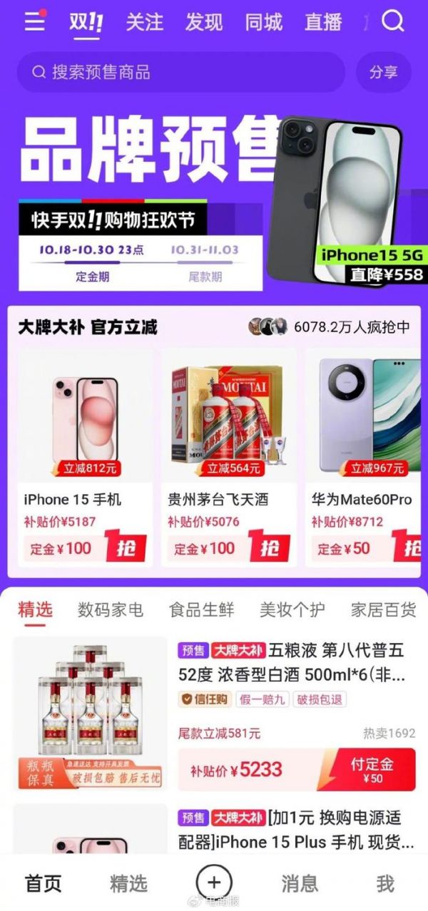 从快手双11的玩法来看,平台的重心放在了商城频道的“大牌大补”上。
