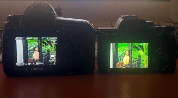 在这里我不敢说佳能的屏幕就一定好于索尼的屏幕,通过对比可以肯定一点,佳能的屏幕显示更接近现实的真实色彩。