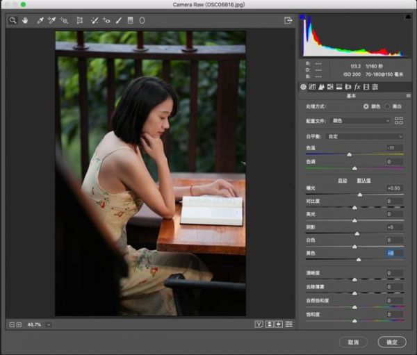 1.在Camera raw中打开照片,在基础面板将曝光增加一点,人物一亮,皮肤就变化好了,注意,这里不能调太亮,拍摄时间是傍晚,太亮氛围不对。色温降低,黄色皮肤得到好转,但人物的肤色仍然偏黄。