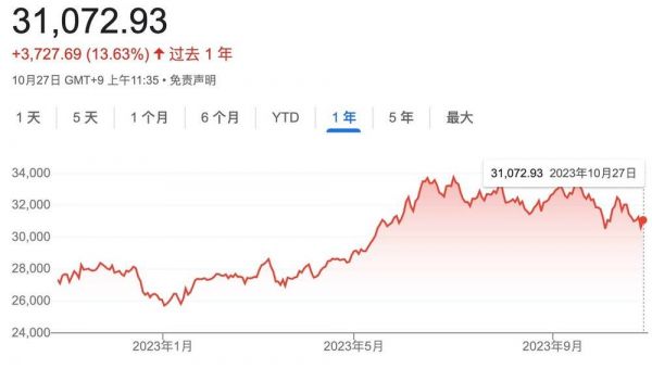 日经指数近一年来的走势