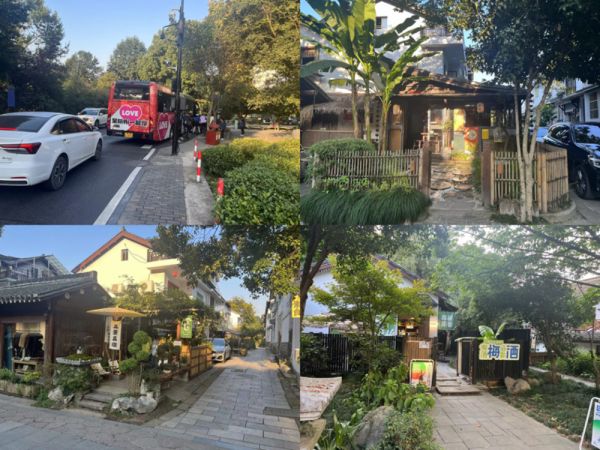 在景区附近的灵隐东公交站,是年轻人的打卡点,因为这里会开来1314路公交车。在去往公交站的天竺路上,也有许多能够吸引年轻人的餐饮小店。这些小店经营素食、茶咖、梅酒等,新中式色彩浓厚、造景能力突出,不少也荣登必吃榜。
