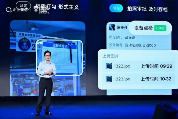 工厂的总经理通过企业微信,搭建了一套「设备点检」模版,工人每次点检时,用手机拍照记录设备的情况,几点几分,检查了哪些点位,都有图有真相,品控检查落到实处。
