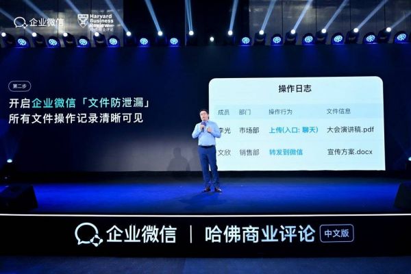 文件的安全传输对移动办公也至关重要。日常工作沟通中,有大量文档资料和核心数据在企业之间、部门之间传输。协鑫在企业微信上开启了「文件防泄漏」功能,所有往来文件的操作记录:谁上传、谁下载、谁看了,都清晰可见。更重要的是,企业微信和微信是打通的,发给微信里合作伙伴的文件,也能看到谁发的、谁看了。这大大降低了管理成本,还确保文件传输安全。