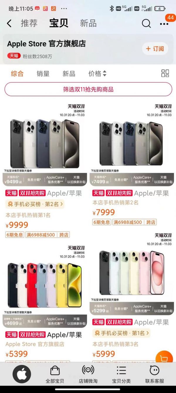 10月30日,新京报贝壳财经记者查询相关网站和店铺了解到,双11期间,苹果在天猫的官方旗舰店和在京东的自营旗舰店都进行了程度不等的优惠券降价,优惠区间500-801元不等。这一降价也引起广泛关注。