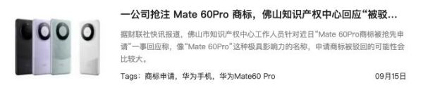要知道,就连华为“Mate60Pro”这么有代表性的名称,都有人恶意抢注。