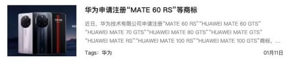 就连“Mate60 RS”,华为都早在今年年初申请注册。
