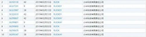 早在2019年那会儿,小米就接连申请了多项“are you ok”的“变种”防御性商标,其不限于“RUOK”、RUOKAY”...各种排列。