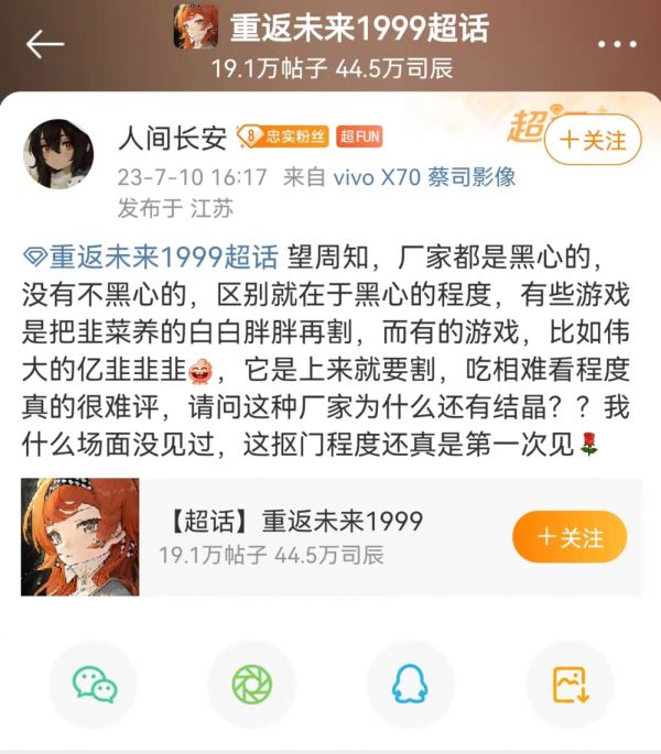实际上,这反映了如今快速变化的用户舆论场的某种观点:在社区中,《重返未来:1999》被认为是“副游”,它的价格不应该和《原神》这样的“主游”相提并论。