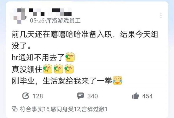 “那天群里有人说要裁员了,结果我下午就接到了电话,我在的组被撤销,但我车票已经买好了。”今年参加游戏行业校招的应届生张海峰告诉我们,他被一家游戏公司毁了Offer。
