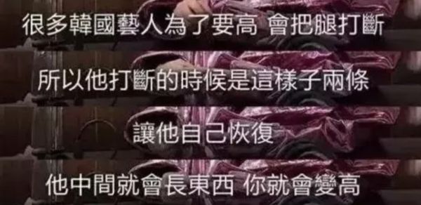 个子不够高,经纪公司甚至会把练习生的腿打到骨折,企图靠骨骼自我修复过程中“长东西”增高。