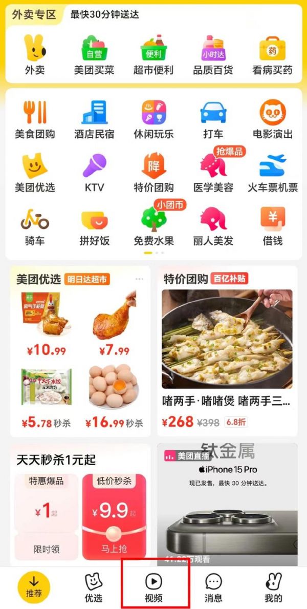 美团短视频入口 图源:美团APP截图