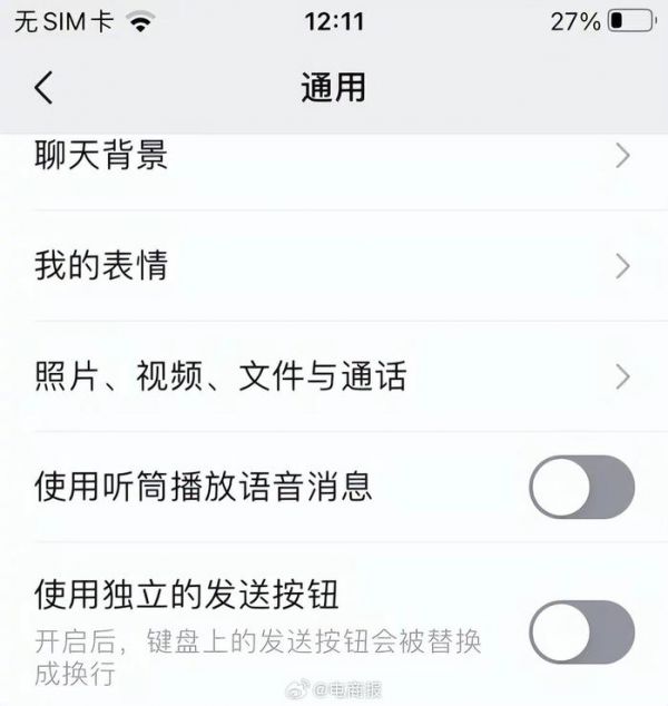 iOS版微信更新,新增独立的发送按钮开关,支持回车换行了……