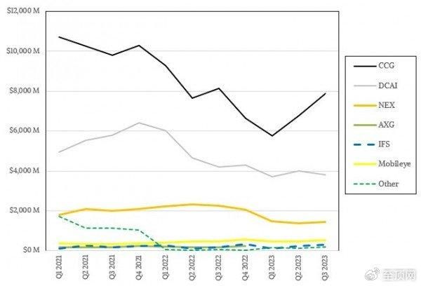 现已停产的Optane 3D XPoint持久内存属于纯服务器产品,现在被划入“其他”类别当中。出于好心,我们就不把“其他”业务在2023年第三季度这22.5亿美元的亏损纳入“数据中心”业务了,否则芯片巨头的成绩单会更加难看。另外,加速计算和图形(AXG)业务已经被拆分和并入DCAI及客户端计算(CCG)部门,所以一知道这部分业务又对应着多大的亏损数字。