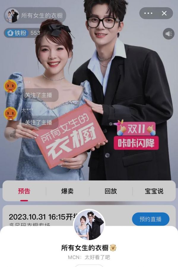 双11大促首日,衣橱直播间观看人次达到1540万+,全场销售额实现2.5亿元,销售件数突破55.6万。10月25日,据淘天集团的数据显示,淘宝天猫双十一大促首日4小时,李佳琦、蜜蜂惊喜社、香菇来了、交个朋友、所有女生的衣橱等直播间率先破亿。