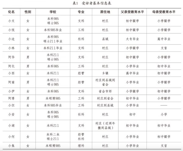 此外,考虑到“小镇做题家”这一概念诞生于社交平台“豆瓣小组”,在网络时代,许多大学生习惯于在网络上使用匿名身份讲述自己的故事与困境,本研究借鉴已有关于“小镇做题家”等问题的研究方法,在半结构式访谈之外,采取网络民族志的方法进一步对一些农村大学生在网络上发布的讲述自己成长故事与困境的帖子进行民族志研究。