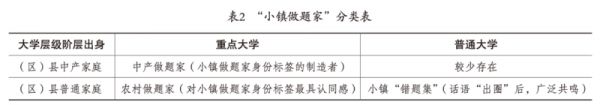 第二,县域普通家庭出身,这类家庭主要包括城镇普通务工家庭以及农民(工)家庭,大部分家庭有至少一代人生活在农村。在这类家庭中,相当一部分学生亦有农村生活经历,在求学过程中经历乡城迁移。基于这两个维度,可得到一个2*2的列联表,从而将“小镇做题家”划分为四类群体(见表2)。
